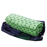 Antiskid Practice Tote Yoga Mat Blankets /Towel Bag (Plum Blossom Granule) Green